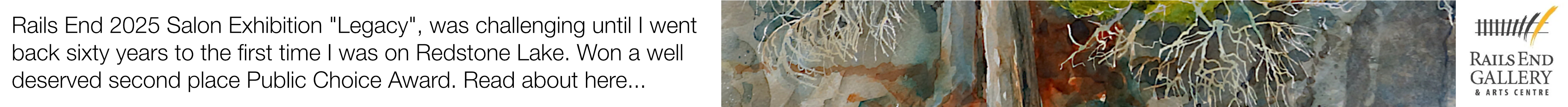 Since childhood I have been cottaging in Haliburton; first on Gull Lake and now living north of West Guilford on Redstone Lake with my artist wife Vicki. I draw my inspiration from the beauty around me. Forests, wetlands, lakes, shorelines, rocks and fauna; are all part of my creative DNA subject pool.