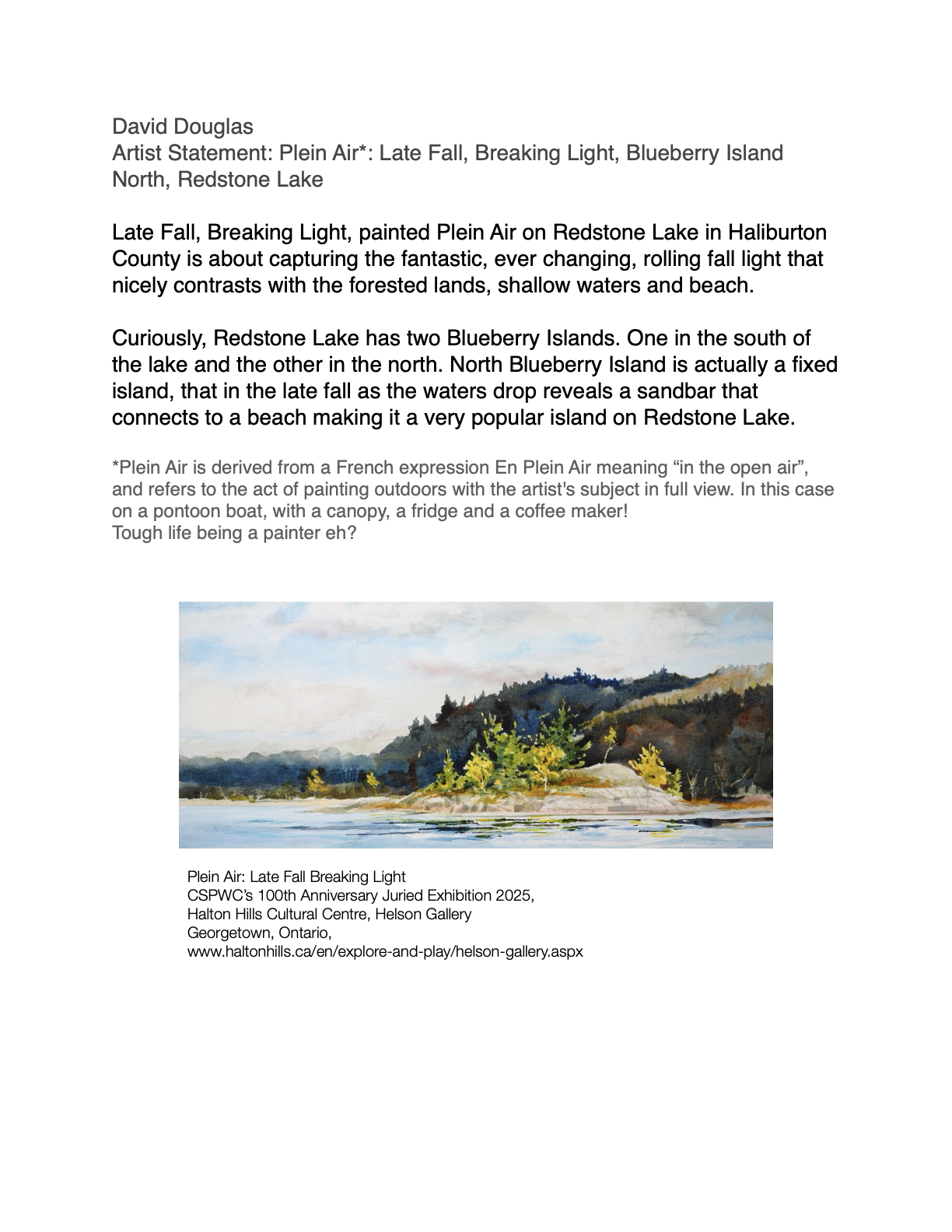 Since childhood I have been cottaging in Haliburton; first on Gull Lake and now living north of West Guilford on Redstone Lake with my artist wife Vicki. I draw my inspiration from the beauty around me. Forests, wetlands, lakes, shorelines, rocks and fauna; are all part of my creative DNA subject pool.