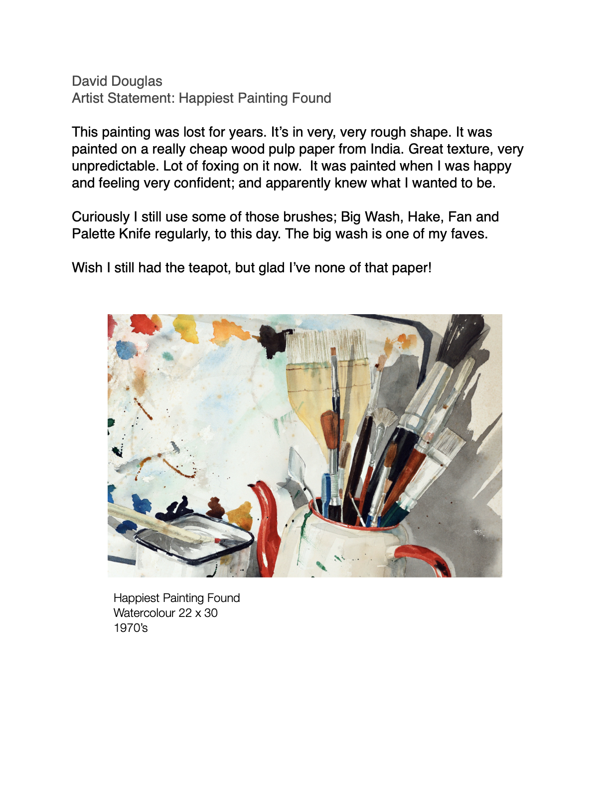 I have sustained my creativity for over sixty years; as a graphic designer, art director, post secondary educator, professor, writer, photographer and as a watercolour artist. My works have been accepted into showings throughout Canada, winning many prizes and awards. My life long love affair with watercolour has steadfastly always been my media of choice.