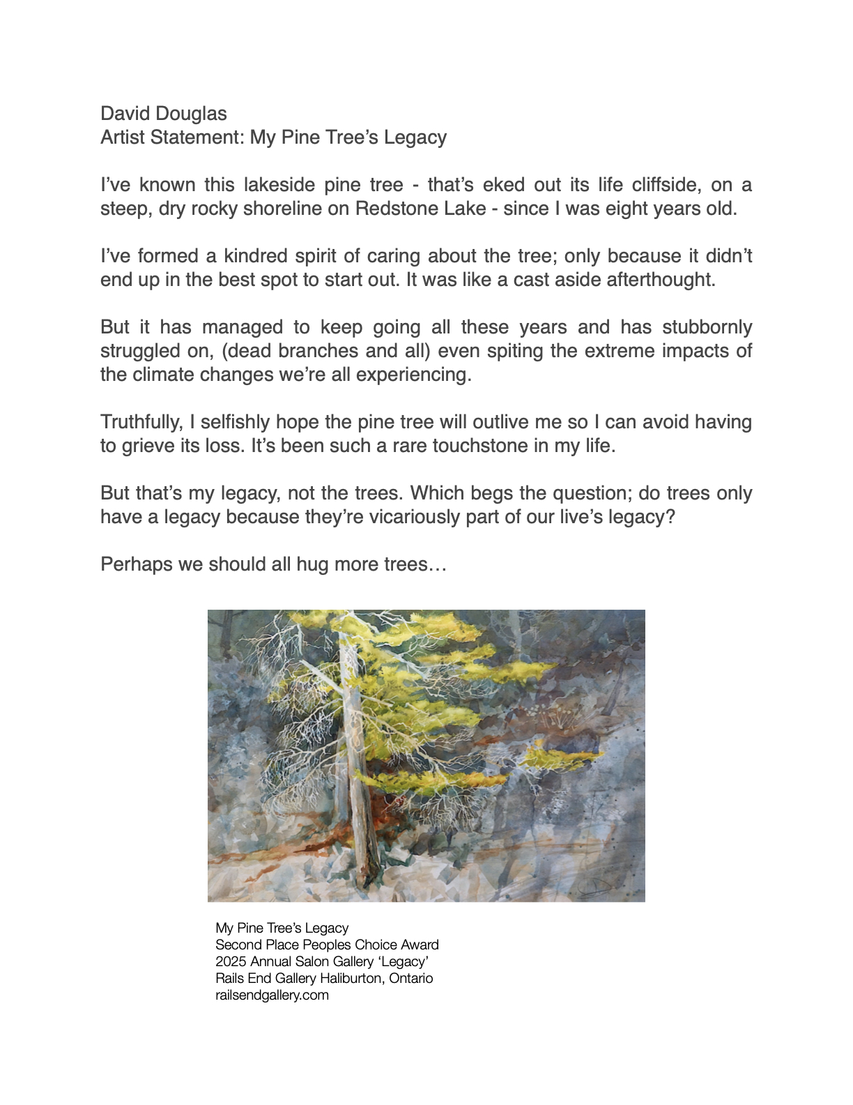 Since childhood I have been cottaging in Haliburton; first on Gull Lake and now living north of West Guilford on Redstone Lake with my artist wife Vicki. I draw my inspiration from the beauty around me. Forests, wetlands, lakes, shorelines, rocks and fauna; are all part of my creative DNA subject pool.